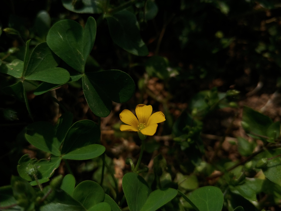 밭과 밭 사이 통로에 괭이밥 몇 포기가 자란다. 꽃이 작아 지나치기 쉽다. 밟고 다니기 미안하다.